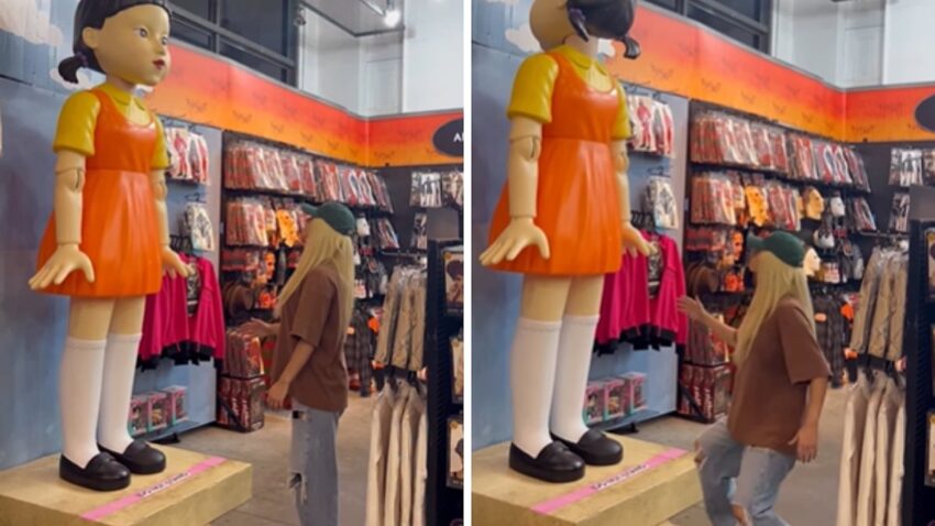 In the clip, the woman is seen participating in one of the deadliest games featured in the *Squid Game* series. In this game, a giant doll acts as the judge and signals when players must move or freeze. When the doll says “red light,” all players must stop immediately; when it says “green light,” they can run toward the finish line. According to the show’s rules, failing to freeze during the red light results in the player being shot.