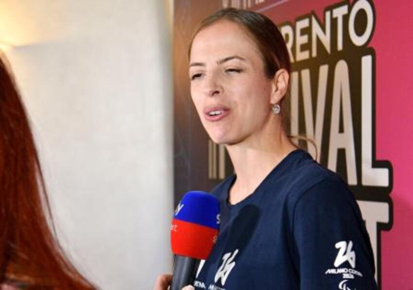 イタリア・トレントで取材に応じるカロリナ・コストナーさん=10日(共同)