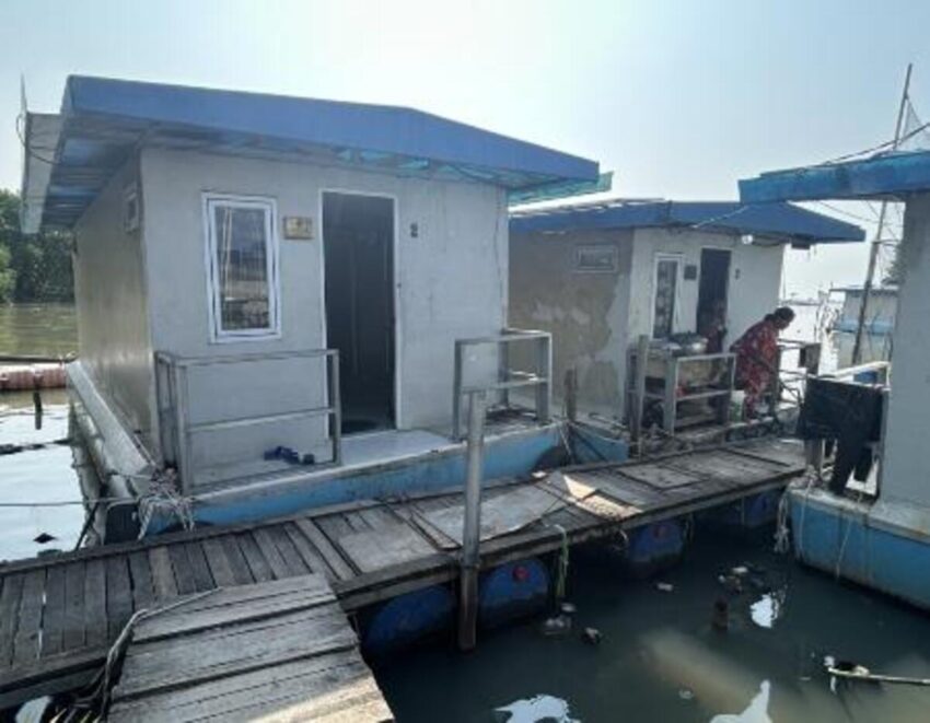 インドネシア政府が提供した船のように浮かぶ水上ハウス=8月、ジャカルタ北部沿岸部(共同)