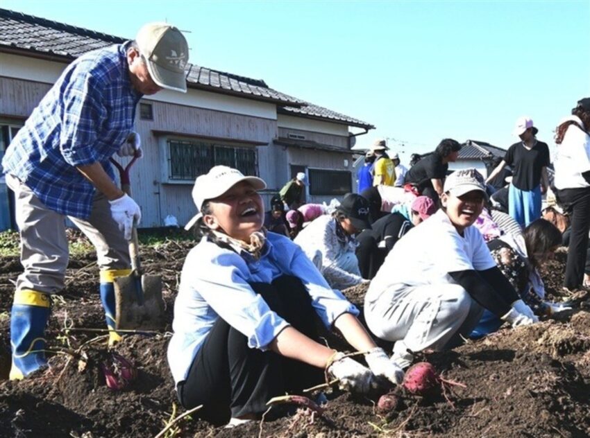 佐賀県鳥栖市の日本語学校では、留学生と町の人たちが一緒に畑で「さつまいも」を育てています。