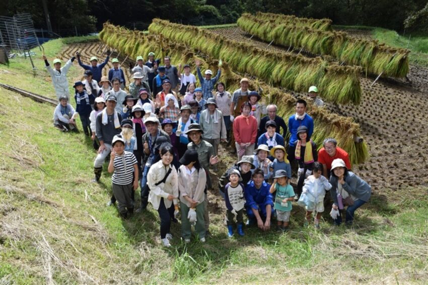 大分県日田市東部の月出(つきで)町で、市内外の住民を招いてさまざまな交流活動に取り組む地元グループ「月出山(かんとう)まちづくり委員会」が、今年も稲刈り体験イベントを開催しました。