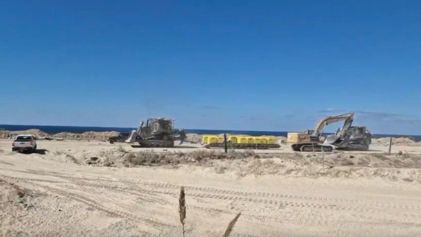 Footage from Monday morning shows the Israel Defense Forces (IDF) monitoring construction equipment hauling in yellow-painted concrete blocks and metal signs. The Yellow Line, as defined by President Trump’s cease-fire deal, is meant to separate the areas of Gaza open to civilians from the 53% currently under IDF occupation, most of which is outside urban areas.