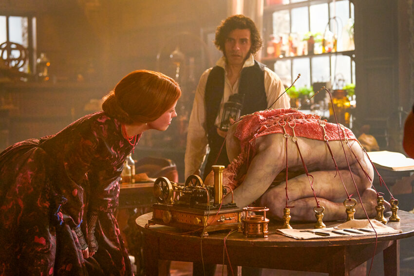 The amazing Oscar Isaac can produce magic on-camera, but the actor’s overripe performance in Guillermo del Toro’s *Frankenstein* fails to cast a spell. Stunting his characteristic charisma to portray the madly determined scientist Victor Frankenstein, Isaac still wields a brooding intensity and sensuality in the part. Outfitted in plush, body-con Victorian garb, his hair a tumble of curls, Frankenstein rages against his detractors or feverishly saws parts off corpses—Isaac is ever the movie star.