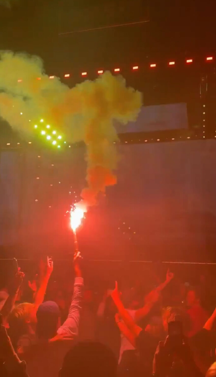 Videos from the performance shared online showed the wild fan waving a lit flare around before throwing the flame elsewhere in the audience. Once it landed, people in the crowd dispersed.