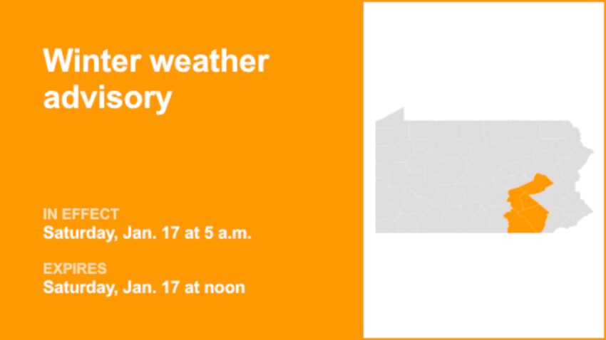 At 8: 05 p. m. on Friday, the National Weather Service issued a winter weather advisory valid for Saturday between 5 a. m. and noon for Dauphin, Schuylkill, Lebanon, York and Lancaster counties.